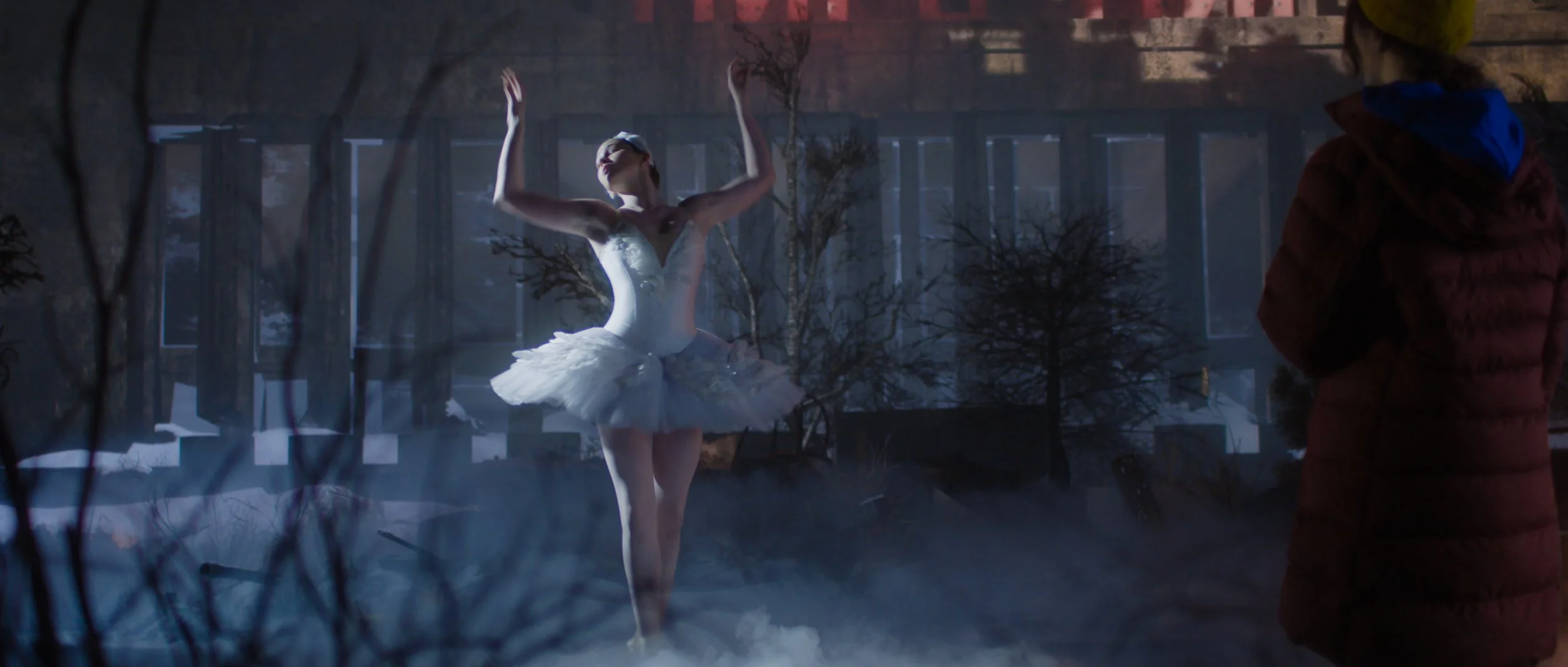 This elegantly shot film is only half as impressive as the performance. Set in a war torn cityscape, this black swan performance draws tribute to the violence and devastation committed against the innocent. Directed by Sarah Hope, for her PHD study, this Proof Of Concept utilises the virtual production facilities at QUT.